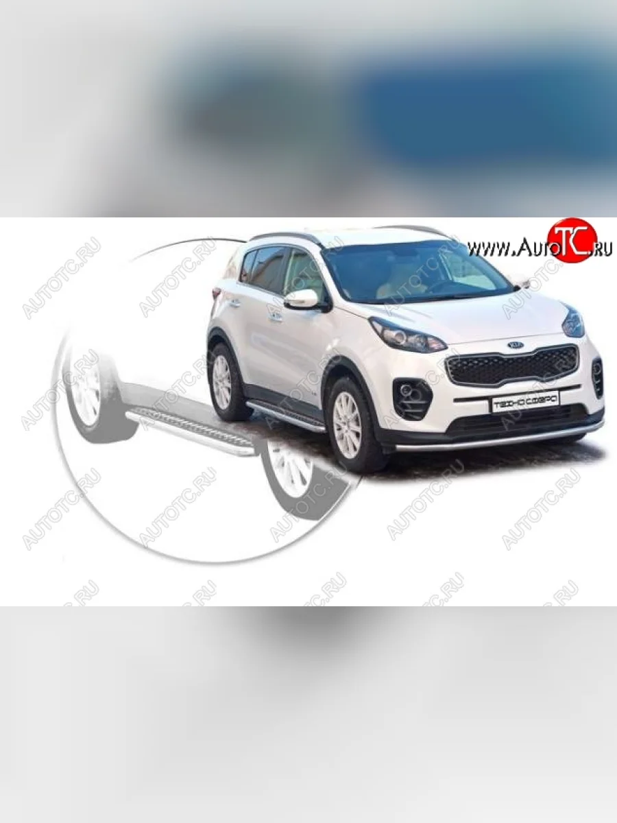 Защита порогов ТехноСфера (Техно Сфера) (Сталь с покрытием, с алюминиевым листом, d63.5 mm) KIA Sportage (2016-2018) 4 QL (цвет: Серебристый) в Владивостоке Приморском крае