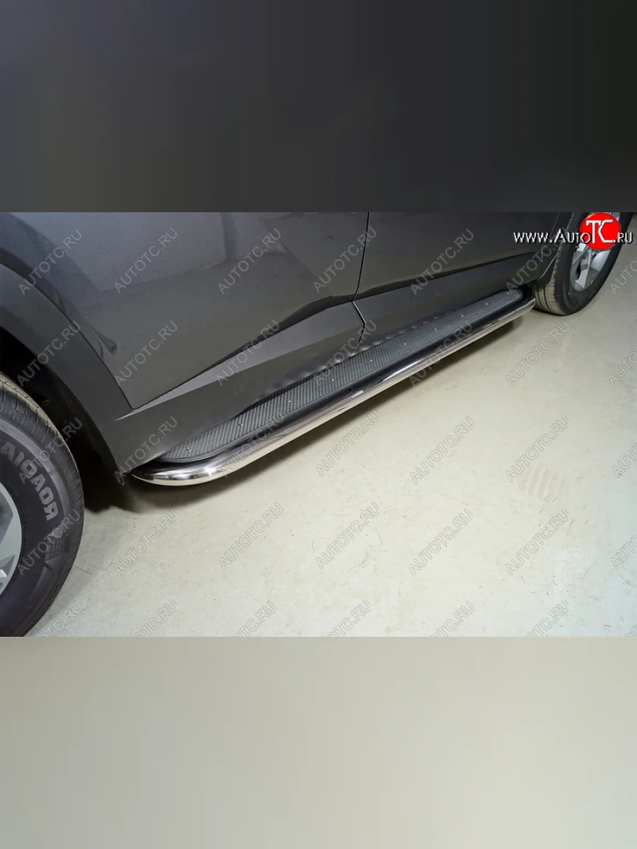 Пороги с площадкой 75х42 мм ТСС Тюнинг Hyundai Tucson (2020-2022) NX4 (нержавейка) в Владивостоке Приморском крае