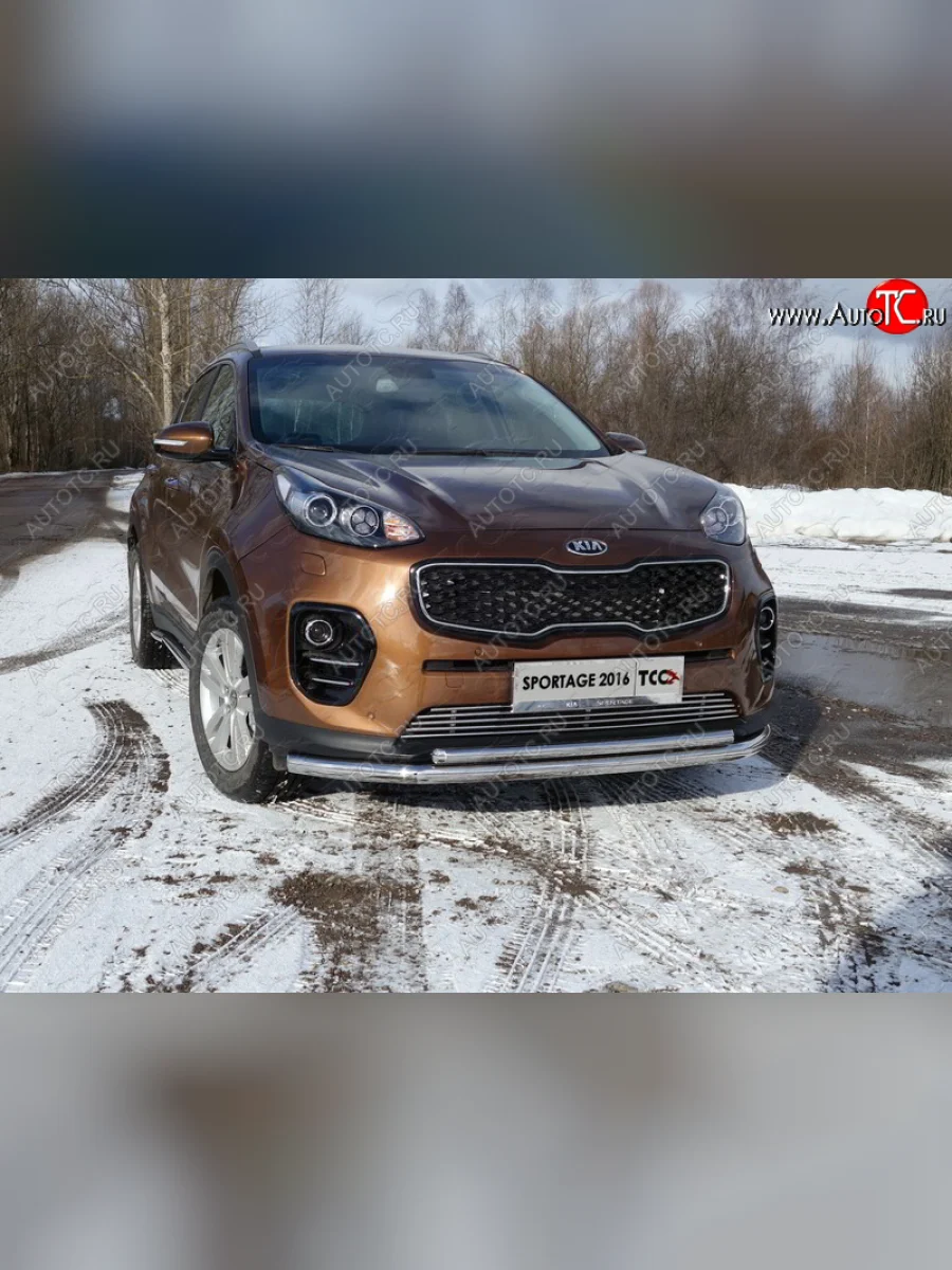 Защита переднего бампера нижняя двойная 60,3*42,4 мм ТСС Тюнинг KIA Sportage (2016-2018) 4 QL (нержавейка) в Владивостоке Приморском крае