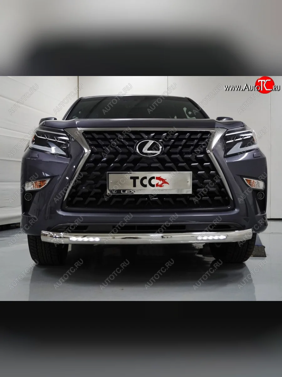 Защита передняя нижняя с ходовыми огнями 75х42 мм ТСС Тюнинг Lexus GX460 (2019-2022) J150 (нержавейка) в Владивостоке Приморском крае