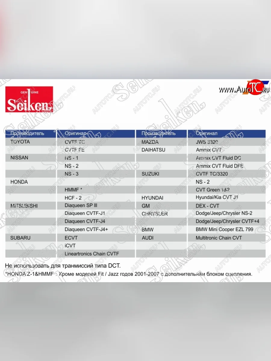 | Наименование | Масло трансмиссионное синтетическое SEIKEN CVT 4л SEIKEN SKCVTFC в Владивостоке Приморском крае |