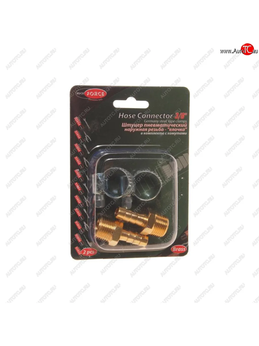 Переходник для компрессора M38 наружная резьба елочка 8мм с хомутами в блистере ROCKFORCE ROCKFORCE rf-mh0605 в Владивостоке Приморском крае