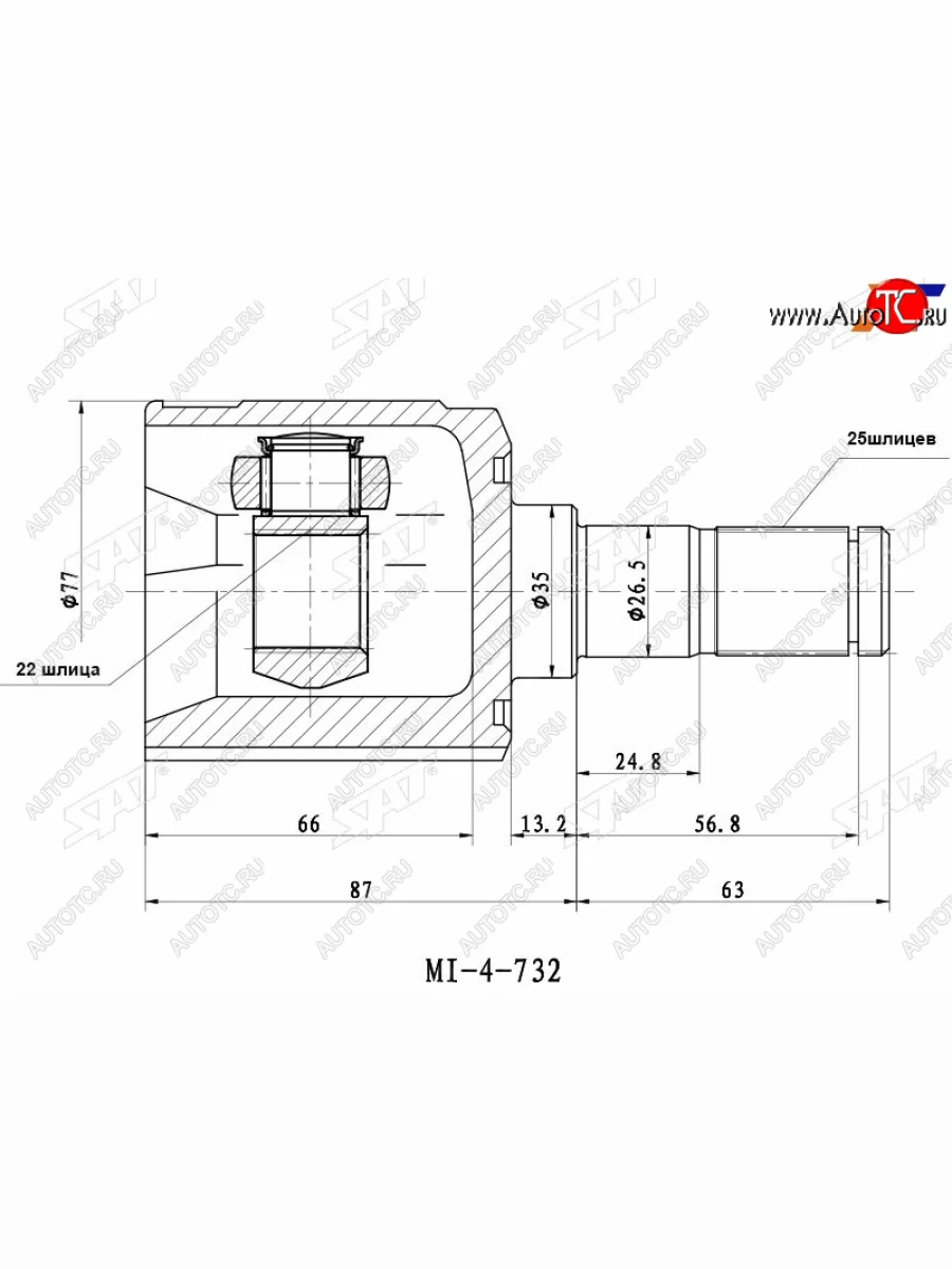 Шрус внутренний перед HYUNDAI GETZ 02-06 зад KIA SPORTAGE 09-12 SAT MI-732 в Владивостоке Приморском крае